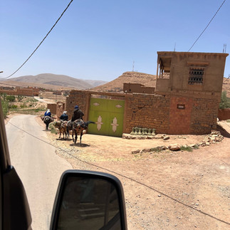 Na szczycie drogi znajduje sie wioska Agoudal. Tu bez żadnej scenografii można by kręcić filmy o narodzeniu Jezusa. Maleńka, ulepiona z gliny wioska. Na ulicy bawią sie dzieci, przy korycie rzeki uprawy - wygląda to jak nasze ogródki działkowe. Każdy mieszkaniec ma swoja parcelę na której uprawia zboże, kukurydzę a czasem nawet ryż i pewnie inne nie zidentyfikowane rośliny jadalne.