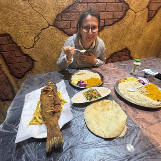 w przedziwnym barze, z przemiłą obsługą, w rodzinnym pokoju (za kotarką), na jednorazowym foliowym obrusie służącym również jako talerz na resztki, zjedliśmy przepysznego red snapera. Jedyny sztuciec jaki dostaliśmy to plastikowa łyżka :)))