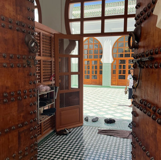 Zaczęliśmy od części andaluzyjskiej. Faktycznie widać wpływy hiszpańskie, ale one od zawsze kojarzyły mi sie z Marokiem. Najbardziej rzucające sie w oczy są kołatki w kształcie ręki.. Ciekawostka o kołataniu w drzwi wejściowe: w wielu domach mieszkają 2 rodziny, jedna na parterze, druga na pietrze. Drzwi są jedne, kołatki są dwie! Skąd wiedzieć będąc w domu do kogo ktos puka? Kołatki są z różnego metalu, już to daje inny dźwięk. Dodatkowo umiejscowione są w różnych częściach bramy wejściowej. Ta z parteru na środku drzwi. Ta z pietra, na futrynie. Dźwięk zupełnie inny!